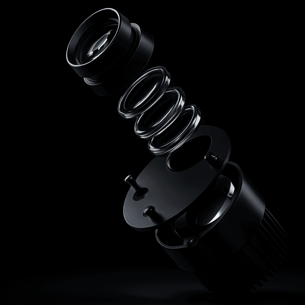 Transformamos tus planos de planta o manuales de seguridad en lentes de proyección (Gobos) de alta precisión óptica en vidrio o metal.